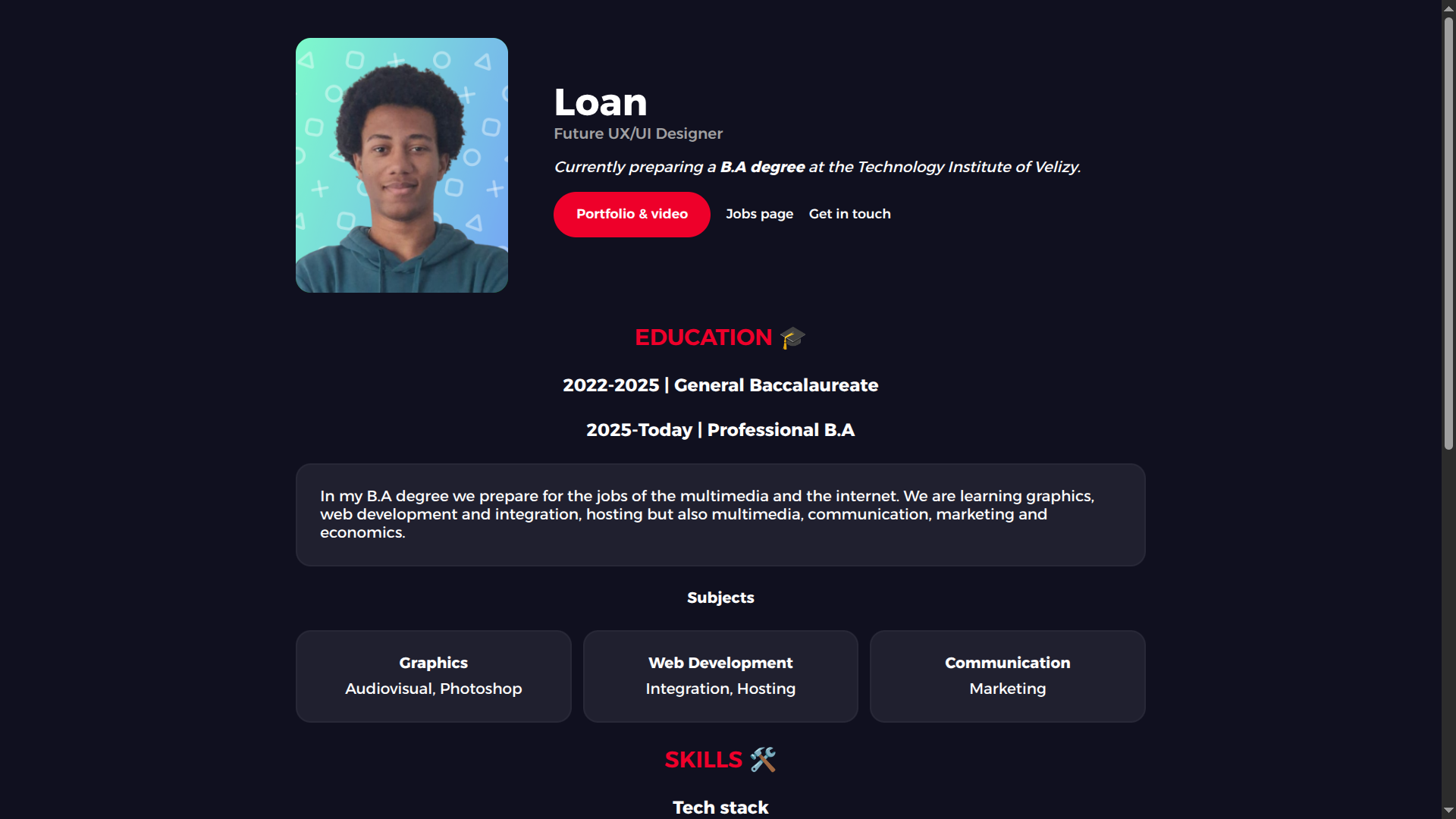 Ce projet a été réalisé dans le cadre de ma formation. La consigne était, à partir d'un CV que nous avions rédigé en anglais, réaliser un site web en HTML et en CSS avec plusieurs contraintes.