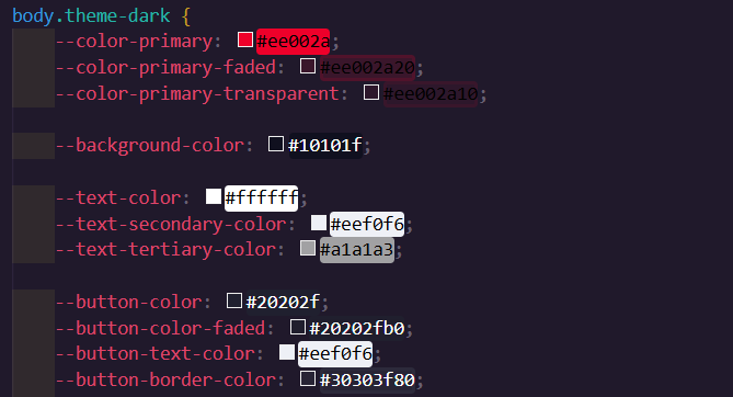 Après avoir généré une page HTML vierge, j'ai défini les différentes couleurs et polices via des --variables-css. J'ai choisi une couleur primaire rouge pour ne pas rester sur mes acquis. Estimant que le bleu était trop « basique », j'ai décidé de designer, pour la première fois, avec une autre couleur.